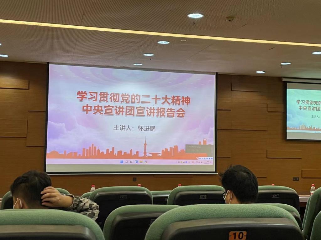 怀进鹏部长围绕党的二十大的主题、主要成果和报告起草过程,过去5年的工作和新时代10年的伟大变革,马克思主义中国化时代化,中国式现代化,全面建设社会主义现代化国家的目标任务,坚持党的全面领导和全面从严治党,应对风险挑战,教育、科技、人才工作的部署,教育系统学习宣传贯彻党的二十大精神的要求等9个方面作了全面宣讲和深入阐释。