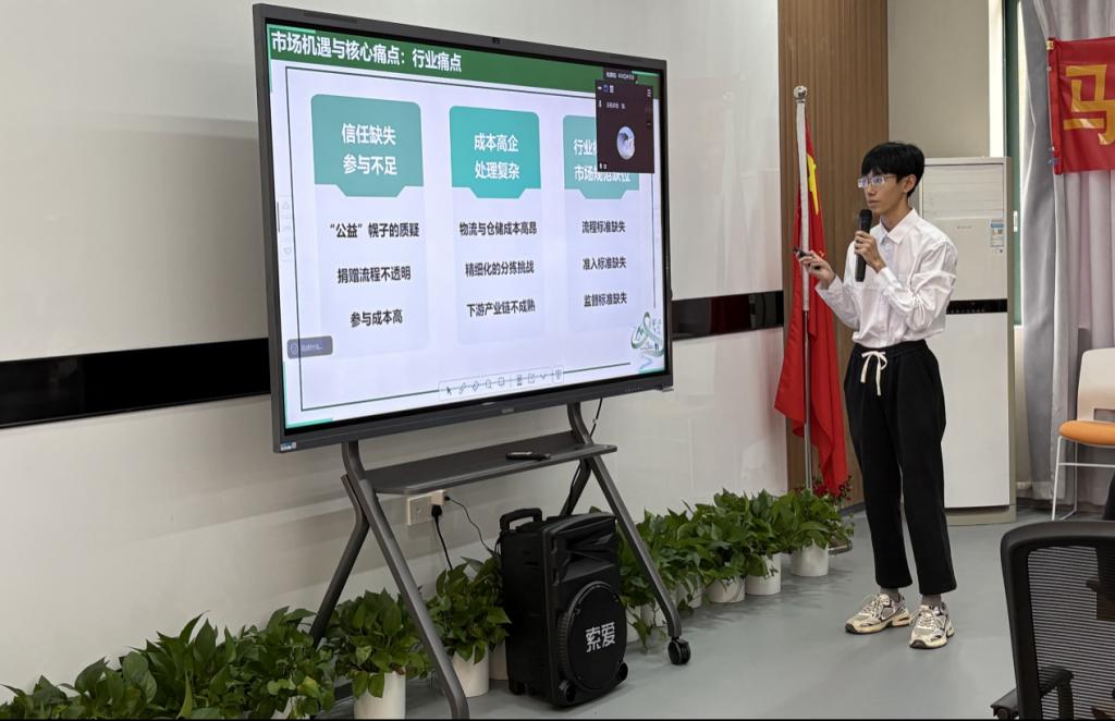 接着10支晋级团队依次进行了紧张的5分钟路演与3分钟答辩。项目覆盖乡村振兴、文化传承、社区服务等多领域,从“智护银龄平等康养——打造社区健康服务新势力”“织梦山河——校园旧衣循环与青年思政实践公益工程”,到“赤红南江——马克思主义文旅赋能计划”,各团队围绕项目核心内容进行了精彩阐述。