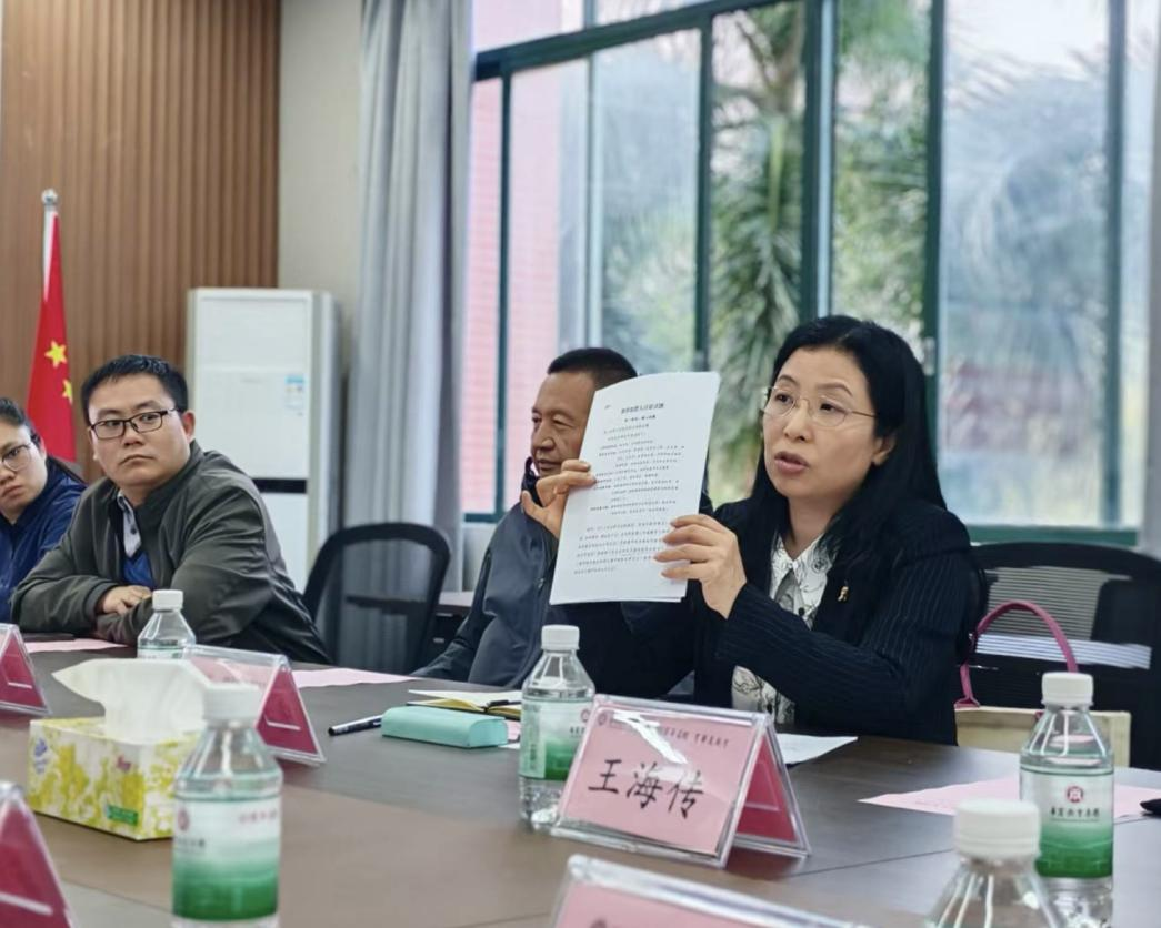 随后,其他教研室负责人相继分享了学习心得与工作思考。中国近现代史纲要教研室主任赖俊锋介绍了教研室在推进“理实融合、数智融合、特色融合”方面的探索,包括网络资源库建设、优质在线课程引入,以及“华商精神”“侨批文化”等本土资源向思政教学资源的转化。习近平新时代中国特色社会主义思想概论教研室主任刘吉昌教授建议,可将“诚实守信、敢闯敢干、艰苦创业、心系家国”的侨批文化核心精神,系统打造成“诚信华商”德育品牌,作为公司迎评的特色亮点。毛泽东思想和中国特色社会主义理论体系概论教研室主任姜波副教授分享了“课前五分钟时政评论”等教学创新方式,并提出课程考核改革设想。形势与政策教研室主任武梅老师建议吸纳员工参与案例库建设,并引入企业家进课堂,进一步建强“形势与政策”课的团队队伍。
