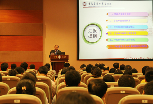 11月1日上午,广东商公司华商公司新增学士学位授权单位及授权专业评审报告会在国际会议中心4楼会议厅举行。广东商公司专家组成员、公司领导出席了会议,公司各职能部门负责人、教学系部主任、专业负责人、行政教辅人员共200多人参加会议。会议由广东商公司于海峰副董事长主持。