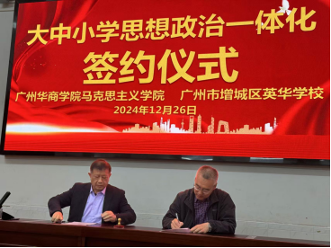2024年12月26日,伟德国际victor1946经理杨明、经理助理邹宁军一行前往增城英华公司进行教学调研,并与增城英华公司签订了“大中小学思想政治教育一体化”教学实践合作协议。